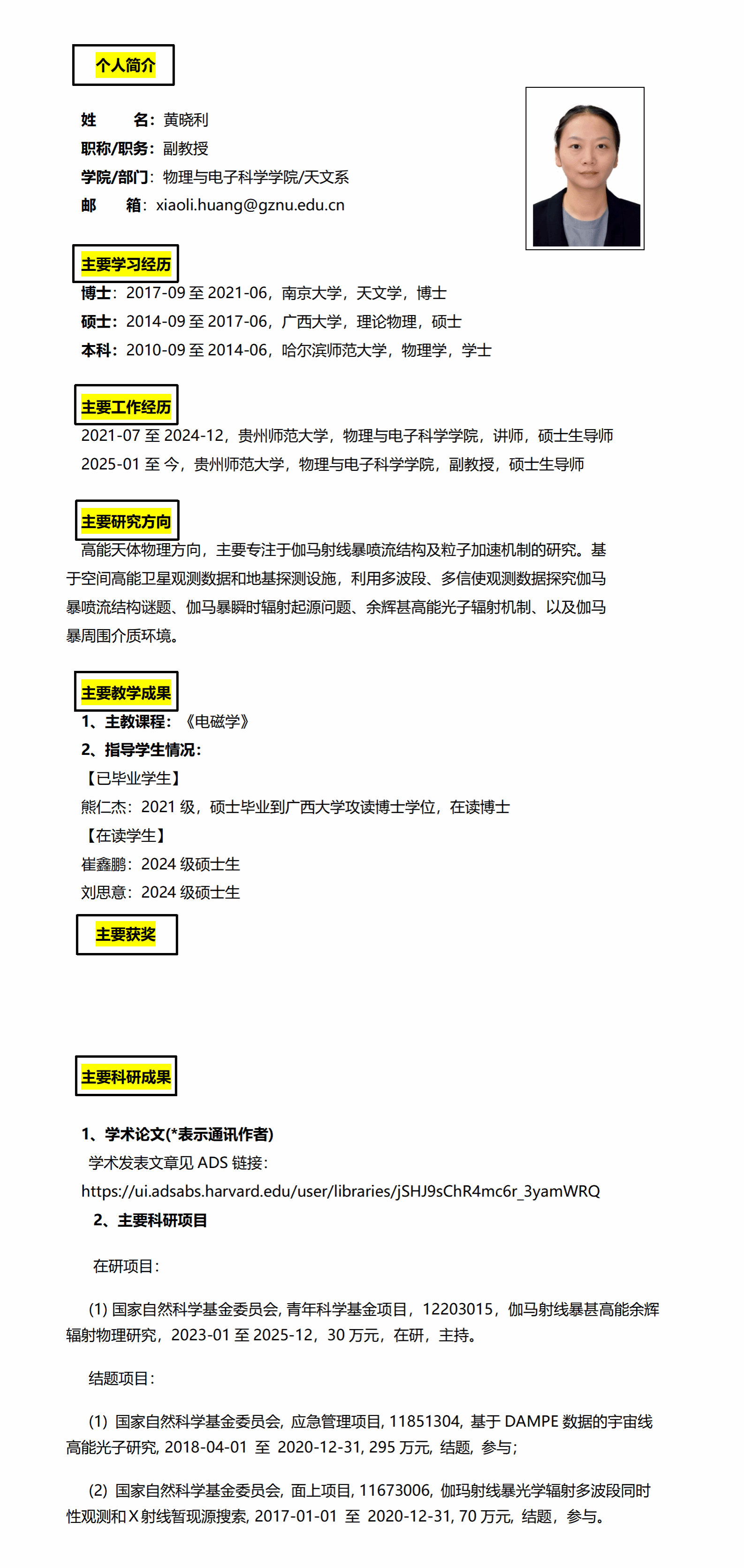 黄晓利个人简介(2025)