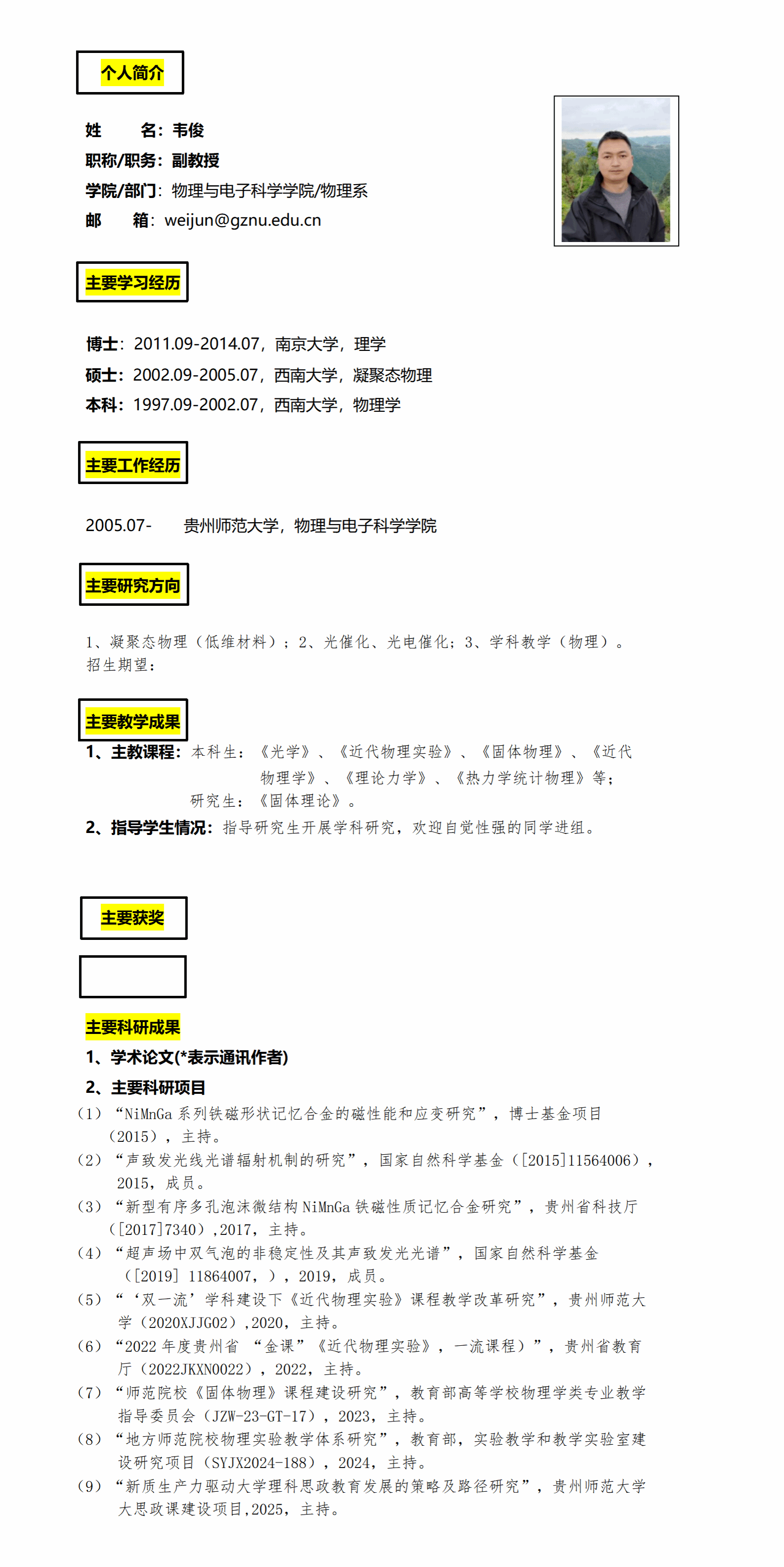 韦俊研究生导师简介(2025)