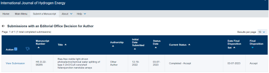 此外,综合赛事平台清洁能源实验室围绕氢能积极开展实验研究,吕兵教授和中央民族大学王文忠教授(贵州师范大学特聘教授)所指导的2021级研究生胡城玮的论文”Bias-free visible light-driven photoelectrochemical water splitting of type II ZnO/CuS core/shell heterojunction nanotube arrays”被工程技术领域SCI二区Top期刊《International Journal of Hydrogen Energy》接收。
