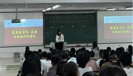 为深入学习宣传贯彻党的二十大精神,带领广大团员青年深入学习贯彻习近平新时代中国特色社会主义思想,学习习近平总书记在庆祝中国共产主义青年团成立100周年大会上的重要讲话精神。世界杯体育官方网站于2023年5月4日在综合赛事平台1522教室举办第十四期业余团校曁青马工程培训班开班典礼。学院团委书记吴培、各年级辅导员来到大会现场,学院各学生组织、各班主要学生干部,学院新入团团员和入团积极分子参与本期培训班。