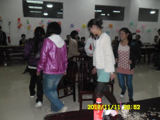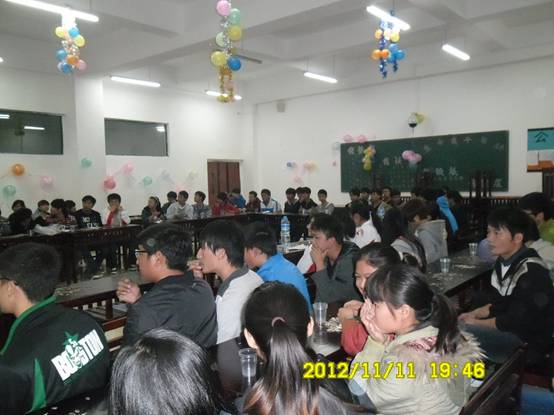 11月11日,光棍节。这个特殊的节日近年来已成为校园趣味文化的代表之一。借此,我班班委决定,于2012年11月11日举办了一个以“光棍节,不寂寞”为主题的光棍节晚会。