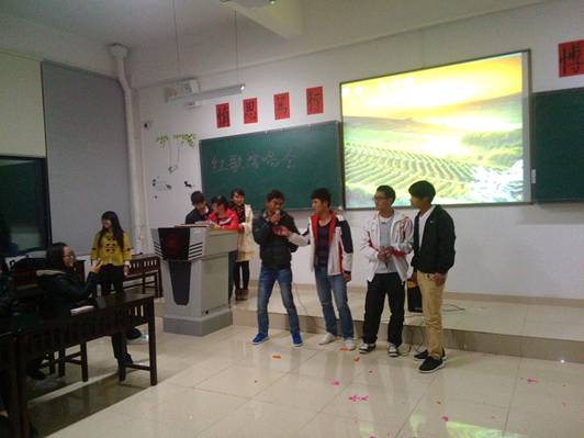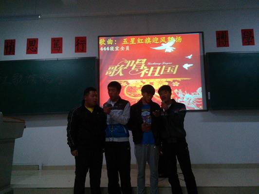 为了激发广大同学们的爱国热情,我班团支部举办一系列爱国活动,于11月9号举行了“红歌飞扬,唱响青春”为主题的红歌赛,在那一首首脍炙人口红色经典中再现了那段峥嵘的岁月,在祖国九十华诞过去之际,我班同学用歌声祝福我们伟大的祖国、伟大的党。