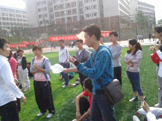 物电学院第四期业余团校 于2012年4月开班,经班级团支部选拔推荐,2012通用技术班有25名同学参与此次学习,4月20日由宝山校区院学生会学生干部主持,我们共同参与了丰富的素质拓展活动。同学们积极参与,受益匪浅。