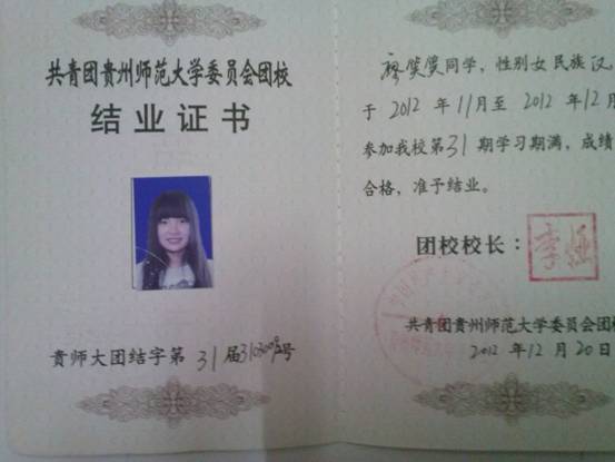 在第31期业余团校培训所获证书