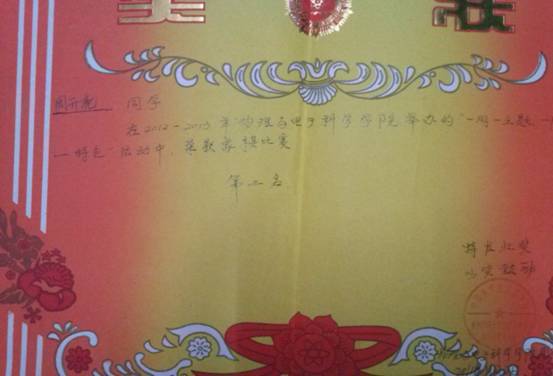 物电学院象棋大赛第2名 |