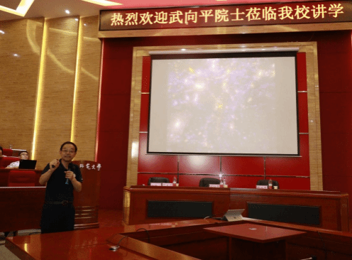 武向平院士作题为“理解宇宙”的学术报告。他从宇宙是谁、从哪里来、到哪里去等天文学最基本的问题逐步展开,用浅显易懂的语言展示了浩瀚宇宙的奥秘,充分揭示了宇宙的演化规律,进而预知了宇宙未来的命运。学术报告尾声,武向平院士和同学们进行了热烈的交流,对学生提出的“人与宇宙的关系”“宇宙大爆炸”“宇宙边界”“科幻外星人”等系列问题进行了耐心细致的回答,让在场师生深刻领略了武院士渊博的学识、严谨的治学、独到的见解,学术报告在热烈的掌声中落下帷幕。