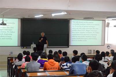 2018年10月11日下午,“格物讲堂”系列讲座第十讲在综合赛事平台1522教室顺利进行。本次讲座主题为 “星际气体动力学和FAST望远镜”,主讲人是美国国家科学院院士、伯克利大学射电实验室主任、天文学教授Carl Heiles教授。讲座由物电学院副院长宋晓书教授主持,物电学院天文学专业第一届全体新生及其他部分师生参加了此次讲座。