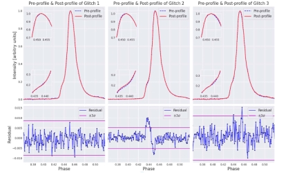 该研究利用澳大利亚Parkes望远镜23.3年的观测数据,开展了PSR J1453-6413周期跃变与脉冲轮廓间的相关性研究。周期跃变就是脉冲星自转不稳定性现象之一,主要表现为脉冲星自转速度的突然加快,与脉冲星内部超流体的活动有关。该研究证实了PSR J1453-6413的第一次周期跃变,并探测到了两个新的周期跃变现象、获得了这颗脉冲星的位置、自行运动、自转参数等重要参数。研究结果表明PSR J1453-6413脉冲星周期跃变与脉冲轮廓变化之间可能存在明显的相关性,该研究对脉冲星周期跃变的观测研究对于探测中子星内部结构及物态具有重要意义。
