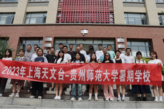 为进一步提升贵州师范大学南仁东班学生的动手能力,了解天文学科发展前沿动态,上海天文台和贵州师范大学共同发起了“上海天文台-贵州师范大学暑期学校”活动。该活动于2023年7月3日至8日在世界杯体育官方网站举办,来自中国科学院上海天文台的郭铨研究员、王鹏研究员,张辉研究员,吴亚军高级工程师、余赟高级工程师,王婧颖副研究员、杨小龙助理研究员,顾琦烙博士后以及刘易恺博士和中国科学院国家天文台的顾俊骅副研究员、云南大学的劳保强博士以及贵州师范大学南仁东班的30余名同学共同参加,贵州师范大学张斌博士负责本次暑期学校的相关工作。