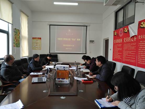 与会人员围绕“两会”精神展开学习讨论。支启军表示凝炼学科方向、注重内涵发展,要在“双一流”建设方面有所突破;宋晓书表示要在工作中贯彻落实“两会”精神,做好本职工作;肖文君表示认真学习“两会”提及的大数据、人工智能等概念,将新知识点融入到教学工作中去;苏醒表示要强化思想认识、提高政治站位、提升履职能力。