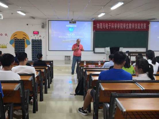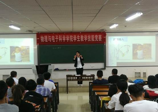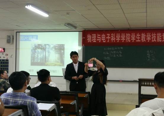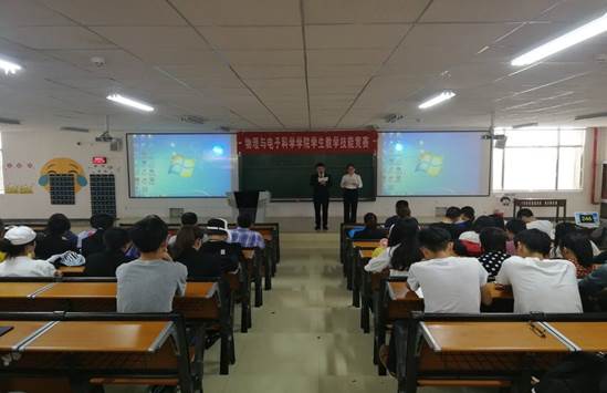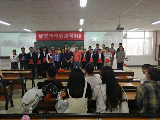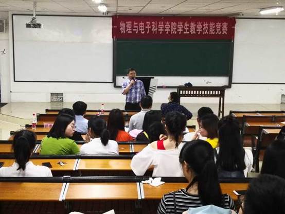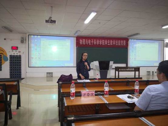 5月17日下午13:00,由综合赛事平台举办的第十届学生教学技能竞赛在学院楼1521、1522两间教室同时进行,罗永祥副校长到场指导竞赛,学院党委书记陈世国、院长支启军、副院长肖文君、省级教学名师石红、物理与天文系副主任董爱军、徐梅、庞礼军、王晓璐、贺启亮和殷喜喜等老师担任评委。团委学生会刘澳儒、简小东等四人主持大赛,学院物理学、物理(通用方向)专业学生参赛并观赛。