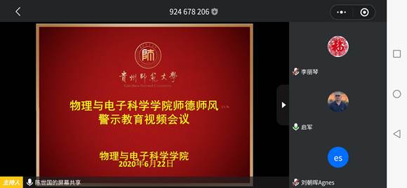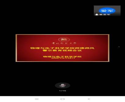 6月22日,综合赛事平台采取腾讯视频会议方式,召开了“立德• 铭责”师德师风警示教育大会,会议由学院党委书记陈世国主持,院长支启军总结并提出具体要求,全院教职工参加了会议。