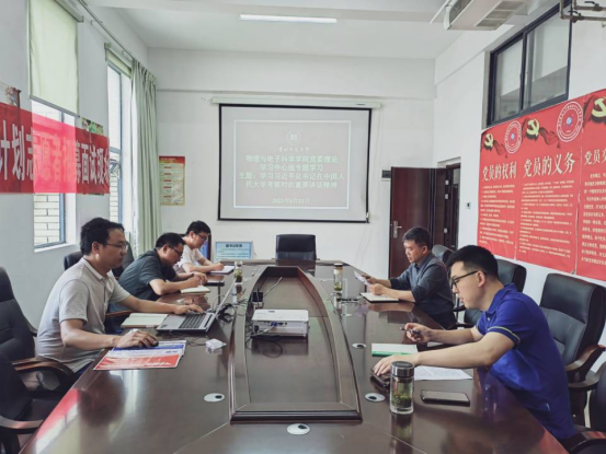 6月23日下午,综合赛事平台党委理论学习中心组在花溪校区学院楼1205会议室专题学习《习近平总书记在中国人民大学考察时的重要讲话精神》和《习近平总书记在庆祝中国共产主义青年团成立100周年大会上的重要讲话精神》。会议由学院党委书记陈世国主持。