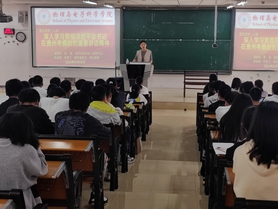 为深入学习贯彻习近平总书记在贵州考察时的重要讲话精神,提升学院入党积极分子的政治素养与理论水平,5月8日,院党委在学院楼1522阶梯教室开展“理论宣传二人讲”活动。院学生科科长(团委书记)吴培讲理论,院党委委员、院长助理刘雪飞讲实践,学院今年新确定一百四十余名入党积极分子参加活动,宣讲由组织员王松锋主持。