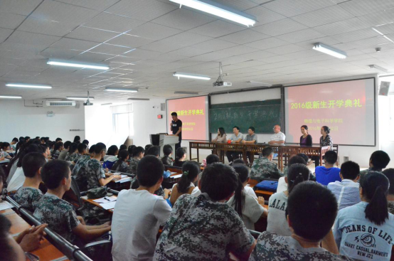 典礼开始,杨柳老师首先对考入物电学院的2016级小鲜肉们表示热烈的欢迎,随后介绍了出席的领导和老师。接着,陈世国书记讲话,并给同学们提出了几点建议和忠告。他指出大学不比中小学,要在大学里取得好成绩,首先,必须改变学习观念,抛弃过去被动学习的想法,为自己而学;其次,要掌握正确的学习方法,合理利用学习和课余的时间,主动学习;最后,他引用了温家宝总理的名言“仰望星空,脚踏实地”来告诫同学们做任何事要定好目标,持之以恒,终有所得。