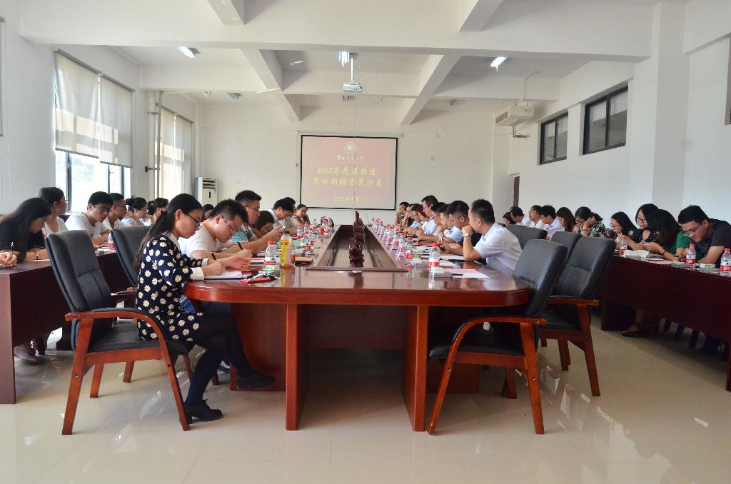 9月25日下午,由学工部主办、世界杯体育官方网站承办的贵州师范大学花溪校区2017年第四期辅导员沙龙活动在学院二楼会议室举行,本次沙龙活动以“大学生创新创业教育途径探究”为主题,学生工作部部长万平、知行学院院长周勋、物电学院党委书记陈世国、文学院党委副书记林也婷、法学院党委副书记欧秀松、外国语学院党委副书记韦志奋、数学科学学院党委副书记赵颐、地理与环境科学学院党委副书记田伟、大数据与计算机科学学院党委副书记田茂超、花溪校区各学院辅导员及学生工作部工作人员等共50余人参会,沙龙活动由物电学院党委副书李应发主持。