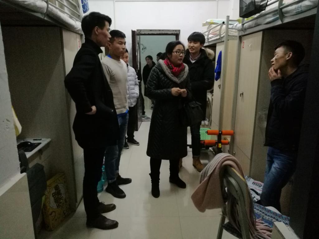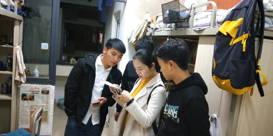 2018年3月13日,物电学院各级辅导员走进学生寝室,与同学们坐在一起进行沟通和交流,帮助同学们解决在日常生活中遇到的困难。了解同学们的寝室生活情况。