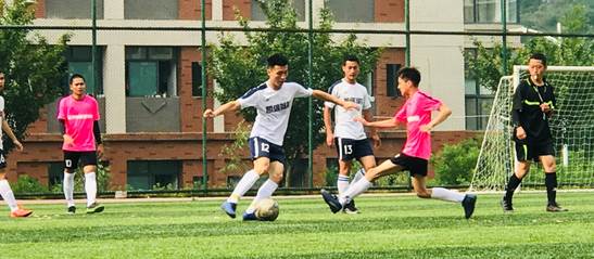 5月12日,“学院杯”男足冠军争夺赛在花溪校区一号足球场打响,参赛的两支队伍分别是综合赛事平台和经济与管理学院。